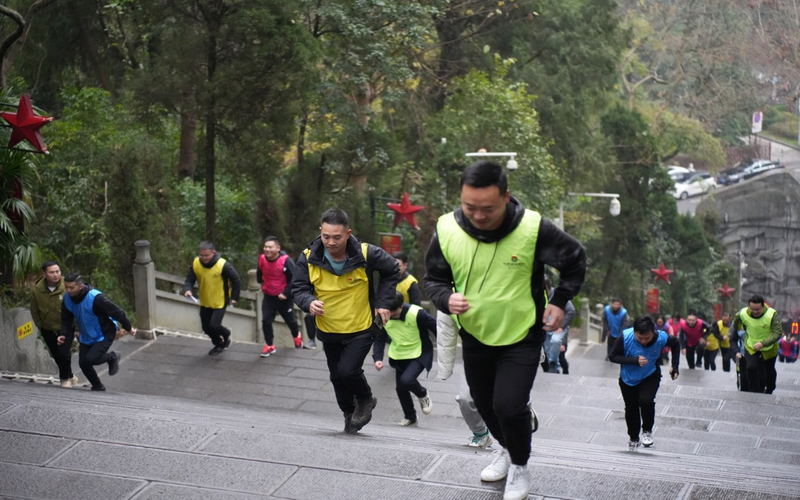 小雨漫漫,天气寒冷,红军山数百级的台阶湿滑险阻,却挡不住参赛人员撸起袖子向前冲的士气。口哨声一响,比赛正式拉开帷幕,参赛人员在红军山山底拉开步伐,大家互相帮助、互相鼓励,并为获奖人员喝彩,为自己登上顶峰的勇气感到骄傲。