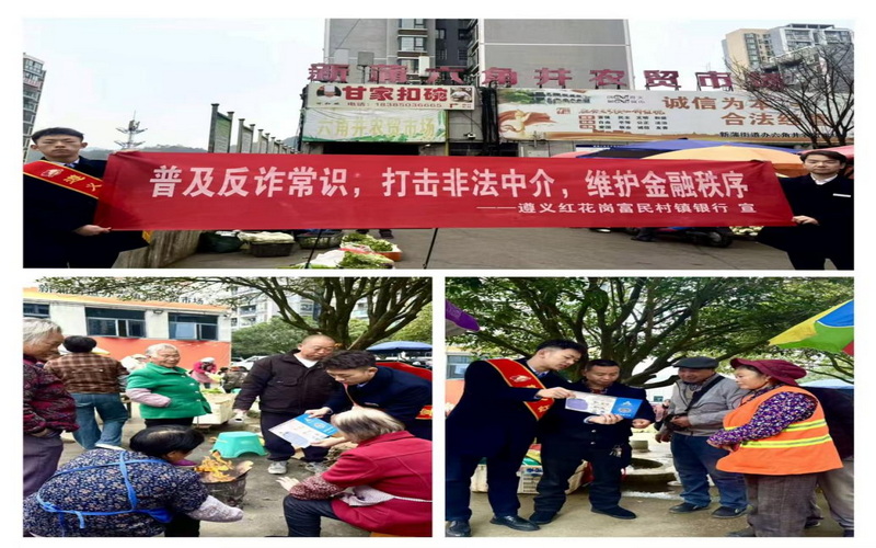 为筑牢基层金融安全防线,切实保障人民群众财产安全,近日,遵义红花岗富民村镇银行(以下简称“我行”)积极组织开展了以“普及反诈常识、打击非法中介、维护金融秩序”为主题的宣传活动。我行派出3支宣传小队,深入新蒲街道农贸市场、主要街巷及思乐为广场等人流密集区域,面向群众进行金融知识普及与风险防范教育。
