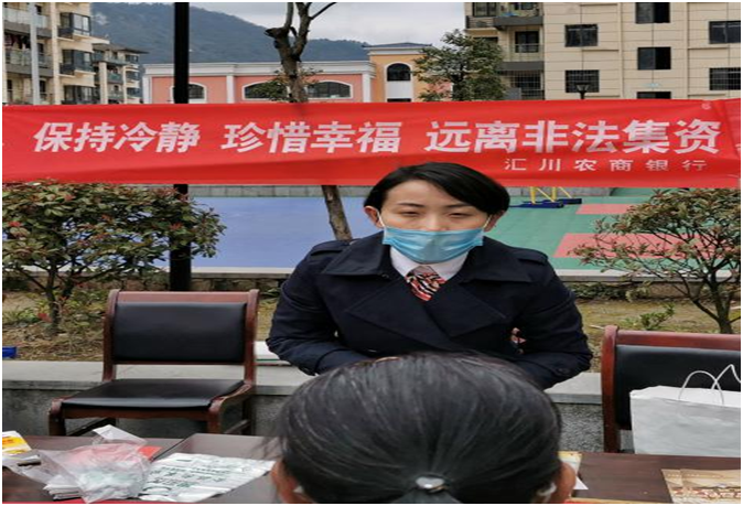 二是走进乡村社区开展普及金融知识宣传活动 3月12日下午,汇川农商银行在汇川区板桥镇移民安置社区举行了3.15金融权益消费宣传,当天正值汇川区板桥镇人社中心“春风行动.送岗到家”的活动此举办,汇川农商银行借此机会,为外出求职务工的人员带来了一场全面的金融知识及疫情防控宣传。为确保疫情防控安全,活动现场为到场的老百姓免费发放口罩,要求领取人员排队、间隔1米的距离领取。汇川农商银行在醒目位置悬挂各项宣传标语,摆放了打击非法集资、防电信诈骗、反洗钱、征信、反假币等金融知识宣传资料。蒲公英志愿者们结合近期的典型案例,向村民深入浅出的讲解了打击非法集资、反洗钱、征信等金融知识,让在场的外出务工求职人员充分认识到反洗钱、征信的主要性,本次宣传活动发放宣传资料200余份,使老百姓通过通俗易懂的方式了解金融知识,本次活动有效的增强了公众对现行的金融诈骗及非法集资的防范意识,对维护地方金融行业的有序运行起到了积极有效的作用。