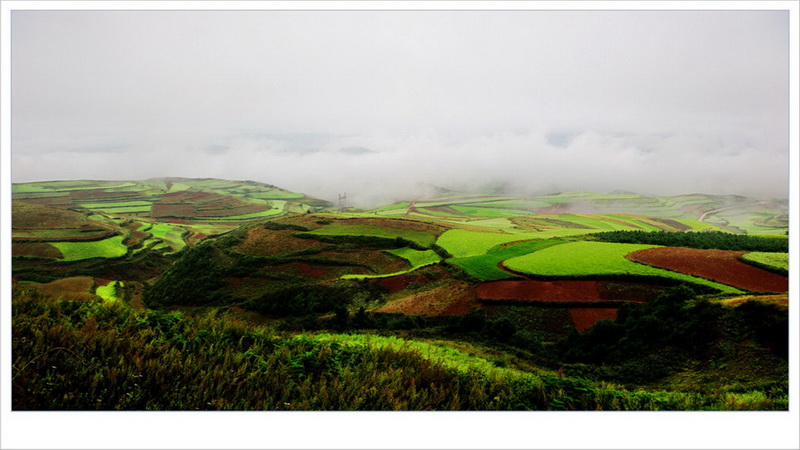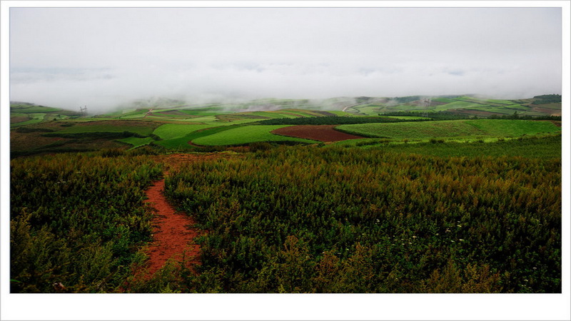 2012年10月国庆,几个朋友相约红土地,被其艳丽吸引,拖着急性痛风发作的身体,和朋友驾车上路,第一天到达东川城,天气不错,希望第二天上山有一个好天气,然上山时细雨濛濛,沿着蜿蜒的盘山公路一路上行,两边沟壑纵横,感觉道路奇险,但风光旖旎,10时抵达时只见满山迷雾,所有的景色均藏在了大雾里,只得找旅店休息,其间和全国各地在此地等天气的摄友交流、闲谈、当得知有的已经等了一个星期时,顿时心里有一些凉了,下午四点,雾有一些散了,在锦绣园照了几照,虽然未见其全貌,却也见到了其秀美,朋友们商量等一天看看,可仍旧大雾,只得匆忙驱车离开,为此行留下了遗憾。